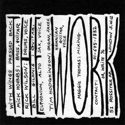 “I’m actually the member of The Work who didn’t get to play on their fine track on ‘Miniatures’. They recorded it one day when I wasn’t there (I had to earn a living as a builder’s mate back in those days). I remember turning up in the evening to learn that ‘With Wings Pressed Back’ had been recorded.