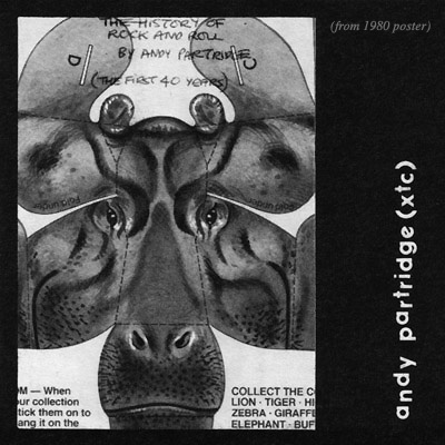 How sad that music on its own may not have been enough to nourish him, as it was for me. My parents also divorced when I was 16. However, I wasn’t prescribed Valium until 1977 after 9 straight years of the over-indulgent rock’n’roll life had resulted in some depression, insomnia, lethargy. I floated around on the little yellow pills for three months then thought, this is ridiculous, and an abrupt lifestyle change to include acupuncture, meditation and organic veggie food (regular delicious visits to Cranks) had me, within weeks, feeling better than I ever had since I turned pro. I sincerely hope Andy is no longer dependent on anything except cutting out animal’s heads from cereal packets. Even without performing live, he certainly has maintained a brilliantly inventive career, expanding into acting, talk shows and book writing. Artists he has worked with as collaborator, producer, composer include Robyn Hitchcock, Harold Budd, The Residents, Blur… He even wrote four songs for a Disney film (business difficulties stiffed the project) and was approached for a possible collaboration with Brian Wilson – another introverted genius. Lately he has has been courageously dealing with the problem of tinnitus (I feel very fortunate that I don’t have it, just some loss in the high frequencies – surely Mott were at least as loud as XTC?). I am sure much more music is to come from the versatile Mr. Partridge.