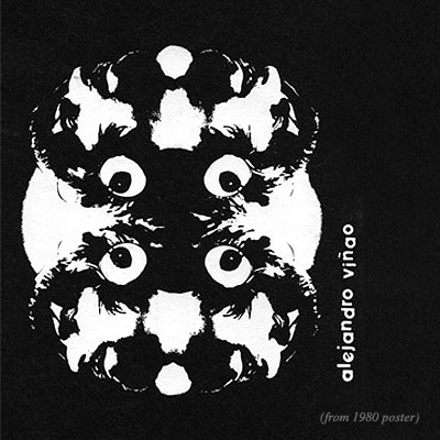 For the poster included with the Miniatures LP, I needed a graphic designer who could put together a fairly complex design featuring artworks supplied by all the 51 artists, including Alejandro’s Rorschach-style image. (These days I could do it myself in no time, with Photoshop, but in those days it required real skills at layout, and real paste for pasting!) Alejandro said he had a friend who could do the job. A few days later Horacio Monteverde, a friendly bearded chap wearing full motorbike gear, climbed the stairs to my studio, and right away came up with a simple, effective idea. The poster would be laid out like a chess board, 8×8, with an artwork in each square. It worked just fine, and the empty squares formed part of its classy black background. The other side of the poster was a Sniffin’ Glue (punk magazine) style mess thrown together by yours truly from letters and other material I’d received from the artists. You can download the poster here.