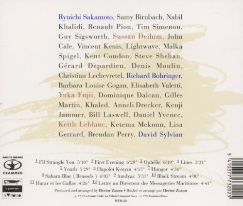 [the above photo relates to the remarkable 1983 recording Noir et Blanc by Zazou/Bikaye/CY1, which has been described as sort of the sound of young Zaire meets Suicide at the grassroots of dub. It then launches into an aural adventure that takes in many, many things...]As with many of the Miniatures artists, we lost touch for quite a while due to my various travels, however, once established in Japan, I became aware of Hector's musical projects via the 1992 album "Sahara Blue" - which had an impressive number of collaborators, including John Cale, Lisa Gerrard and Brendan Perry of Dead Can Dance, Gérard Depardieu, David Sylvian, Bill Laswell, Ryuichi Sakamoto, and Tim Simenon. Released on the admirable and still very active Belgian independent label Crammed Discs, its packaging was a stylish list of the participating artists. (Aside: I emulated this idea when it came to designing the cover for "Miniatures 2" - however the record company who released it in Japan were astonished, saying "why would you put all the artist credits on the front? normally they go on the back!" so for that market the credits were removed from the front cover.) After seeing the "Sahara Blue" cover (especially the back) I realised that Hector had been very busy in the years since we had met, establishing a strong rapport with artists from all over the globe, in all genres of music. It was as if he took an album like Miniatures and managed to smear or erase the gaps between the tracks and layered the various kinds of music over each other with remarkable skill.This was how Hector continued his career, blending the past and the present, the ethnic and jazzy and electronic, as exemplified in the numerous albums listed in his excellent, informative Wikipedia entry. Among his subsequent collaborators - a veritable Who's Who of music - are Björk, Siouxsie Sioux, Suzanne Vega, the Balanescu Quartet, Mark Isham, Marc Ribot, Harold Budd, Peter Gabriel, Sandy Dillon, William Orbit, Laurie Anderson, Jane Birkin, Asia Argento, and Miniatures artists Sainkho Namtchylak, Tokiko Kato, Jane Siberry and Robert Fripp.In 2008 I tracked down Hector's manager in order to settle some minor business matter, and received what felt like a rather distraught email saying that Hector was gravely ill in hospital. It turned out that he was in the final stages of cancer, and soon, on September 8, tragically young at 60 years old, he left us.