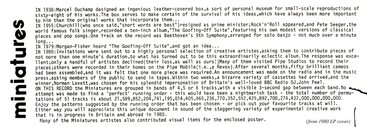INTRO TEXT FOR THE 1980 LP OF MINIATURES 1 (click to expand):